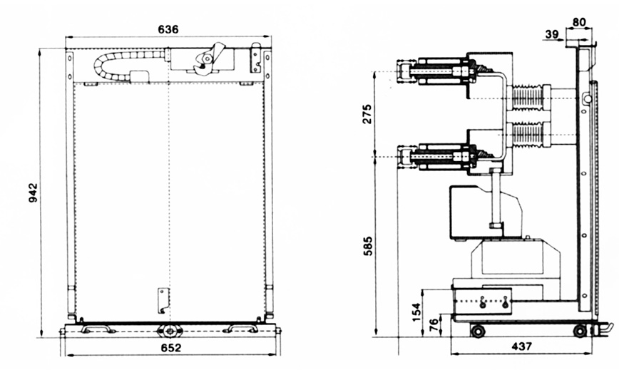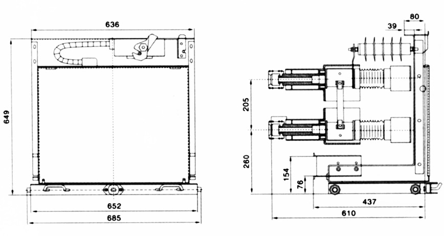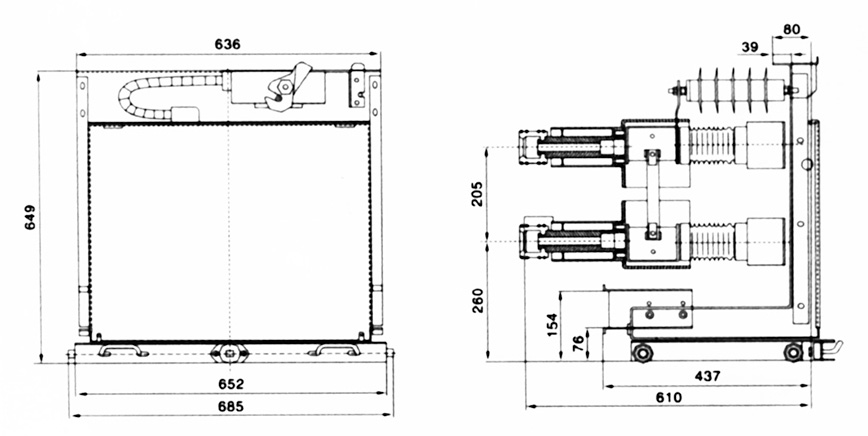 此車型適用于配置JDZ(X)10<G>型電壓互感器,安裝尺寸圖參照大連第一互感器廠,如配置其他型號(hào)電壓互感器,訂貨時(shí)需另外注明。熔斷器按XRNP-10型或RN2-10型配置。