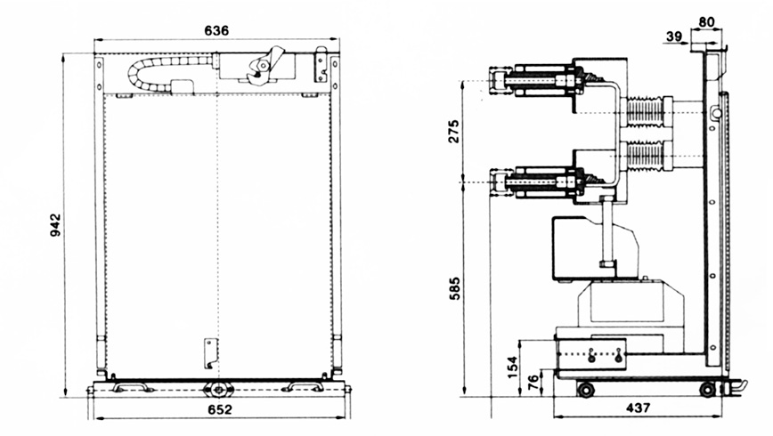 630A~1250A計(jì)量手車外形尺寸