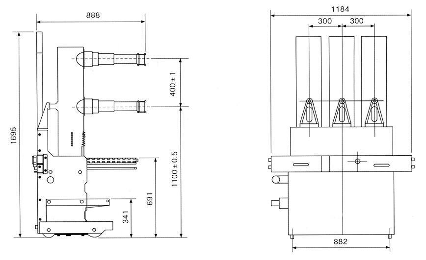 斷路器與操動機構采用上下布置結構,有效地降低了斷路器的深度。