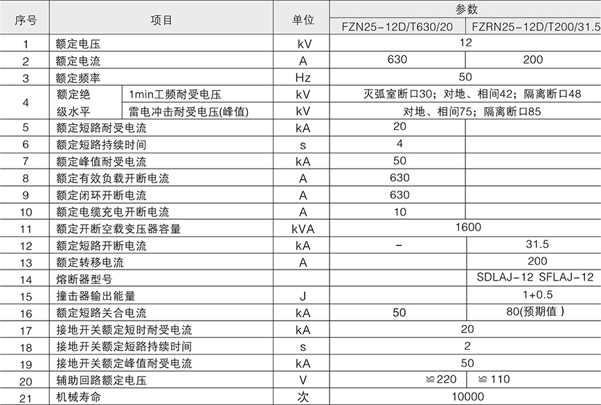FZN25-12/FZ(R)25-12D/T型戶內(nèi)高壓真空負(fù)荷開(kāi)關(guān)和FZRN25-12D/T125-31.5型戶內(nèi)高壓真空負(fù)荷開(kāi)關(guān)-熔斷器組合電器是三相交流50Hz、12kV配電系統(tǒng)的控制和保護(hù)裝置,產(chǎn)品無(wú)油、無(wú)毒、無(wú)燃火與爆炸危險(xiǎn),廣泛使用于工礦企業(yè)及城市大樓配電站等場(chǎng)所。后者對(duì)變壓器等電氣設(shè)備的保護(hù)作用比斷路器更可靠,特別適合于環(huán)網(wǎng)、雙輔射供電單元和箱式變電站。