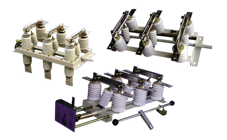 本隔離開關(guān)為三極型,由底架、轉(zhuǎn)軸、及杠桿、瓷支柱絕緣子、閘刀及接線板等部分組成。轉(zhuǎn)軸安置在底架上,其上焊有三對杠桿,杠桿通過拉桿瓷絕緣子與閘刀相連。轉(zhuǎn)軸伸出底架,其任何一段均可與操作機構(gòu)相連。