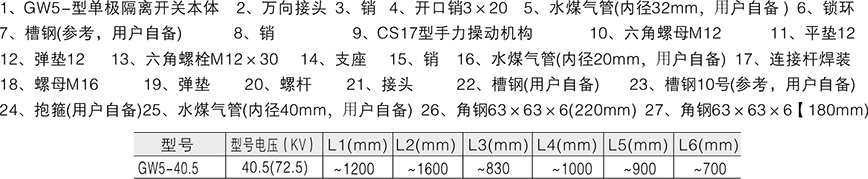 GW5-40.5(72.5)戶外高壓交流隔離開關(guān)為交流50Hz的戶外高壓電器設(shè)備,額定電壓等級有40.5kV,供高壓線路在無負(fù)載情況下進(jìn)行開合,以及對被檢修高壓母線、斷路器等電氣設(shè)備帶電的高壓線路進(jìn)行電氣隔離之用,也可用于開、合小的電容或電感電流。