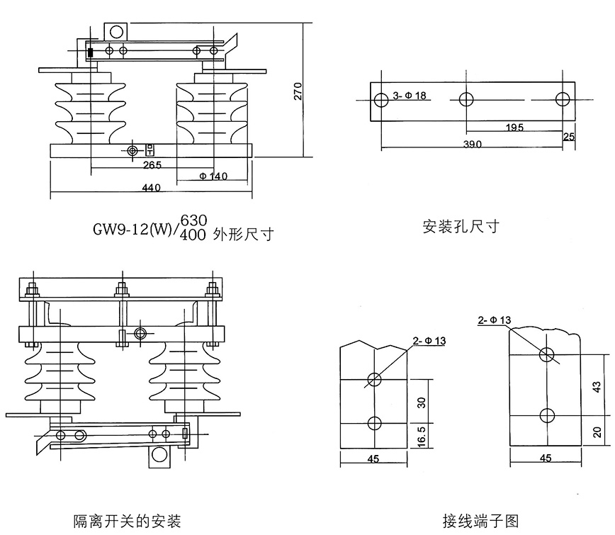 GW9型戶外高壓隔離開關(guān)為交流50Hz的戶外高壓電器設(shè)備,額定電壓等級有10kV,15kV,24kV供高壓線路在無負(fù)載情況下進行開合,以及對被檢修高壓母線、斷路器等電氣設(shè)備帶電的高壓線路進行電氣隔離之用,也可用于開、合小的電容或電感電流。