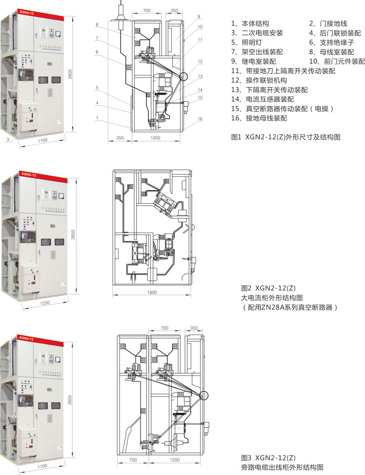 XGN2-12(Z)開關(guān)柜為金屬封閉箱式結(jié)構(gòu),柜體骨架由角鋼焊接而成,柜內(nèi)分為斷路器室、母線室、電纜室、繼電器室等,室與室之間用鋼板隔開。