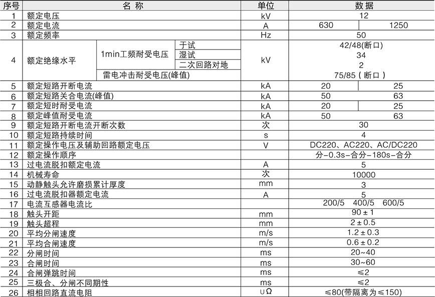 斷路器符合GBl984-2003、DL/T 402-2007和IEC60056等技術標準。